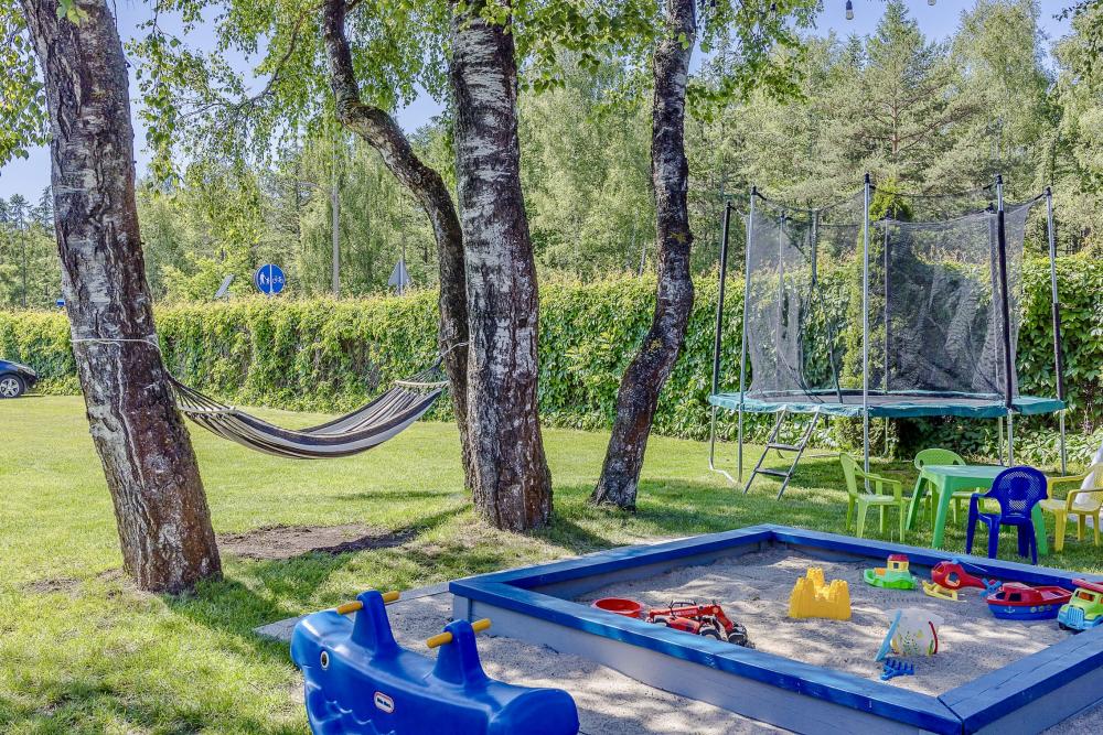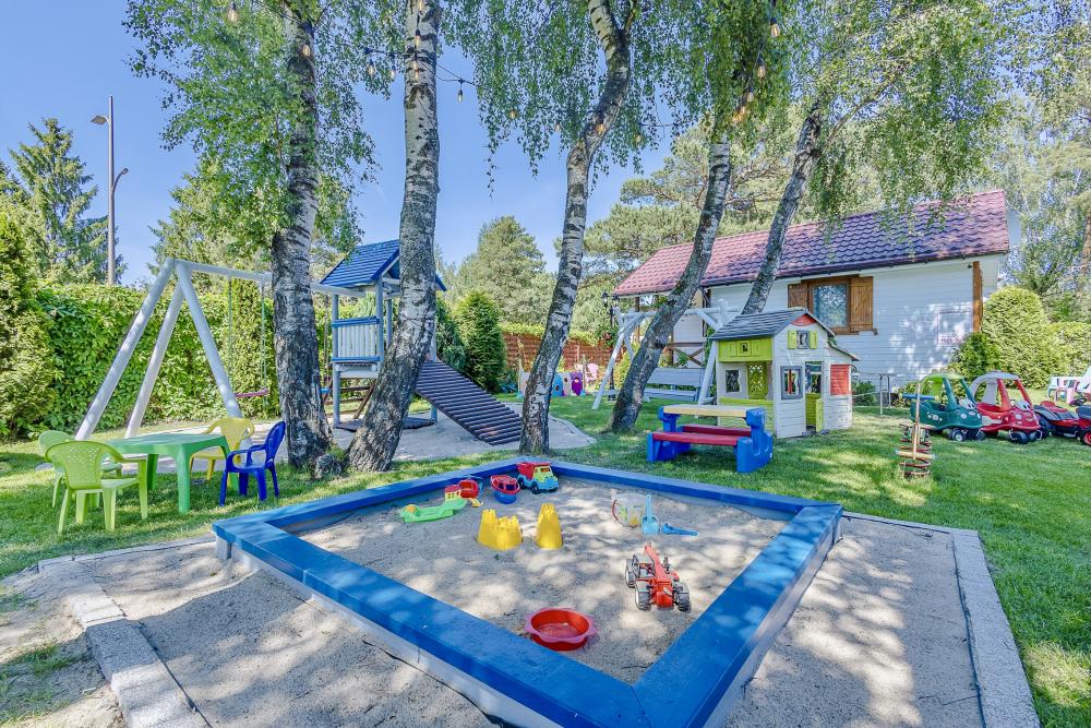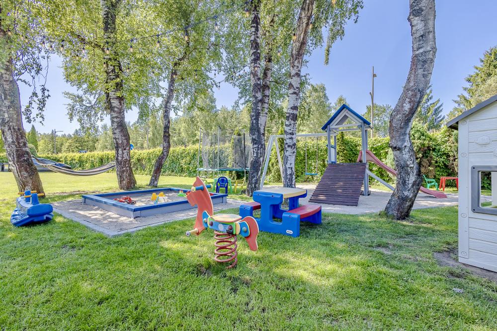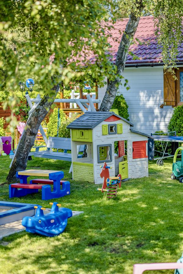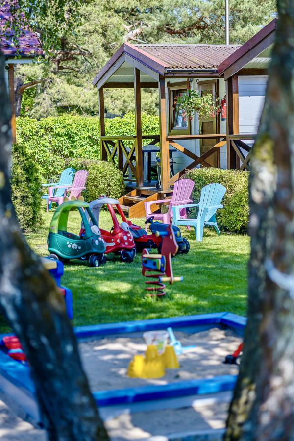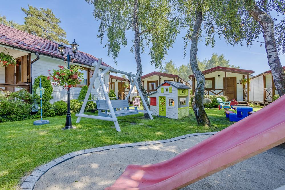 Oferta naszego ośrodka jest skierowana do rodzin z dziećmi. Teren wokół domków jest zadbany i ogrodzony. Dla dzieci został przygotowany plac zabaw: huśtawki, zjeżdżalnia, piaskownica oraz miniaturowy domek Somby Floralie z akcesoriami, werandą i ogródkiem. Miejsce zabaw dla dzieci ulokowane zostało między drzewami, co osłoni najmłodszych przed słońcem.