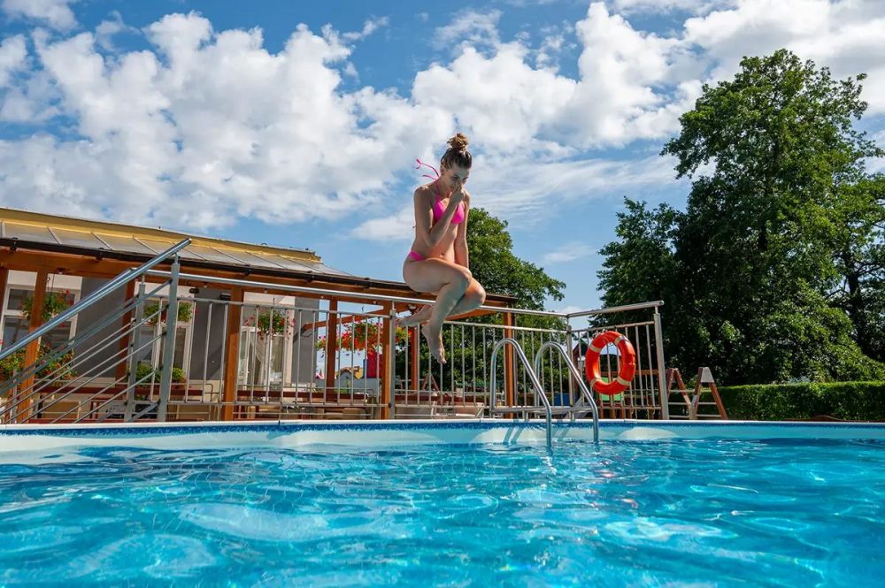 W naszym ośrodku znajduje się zadaszony i podgrzewany przez cały sezon basen zewnętrzny, z wodą o temperaturze 30 stopni. Deszczowy lub chłodniejszy dzień nie pokrzyżują Twoich planów/