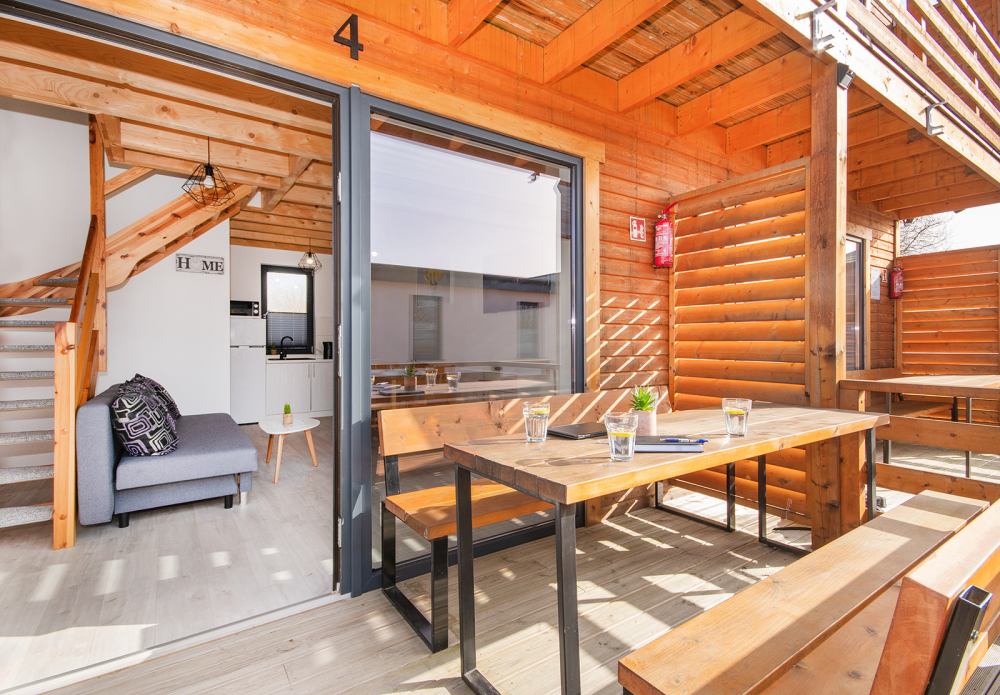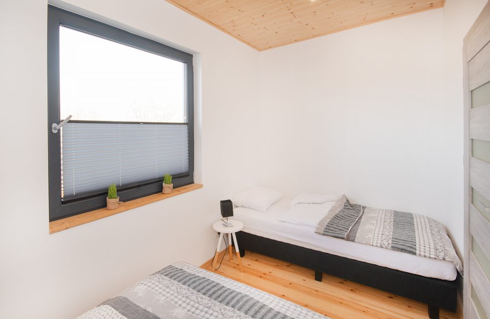 1 poziomowy, 1 salon z aneksem, 2 sypialnie, 1 łazienka, taras
