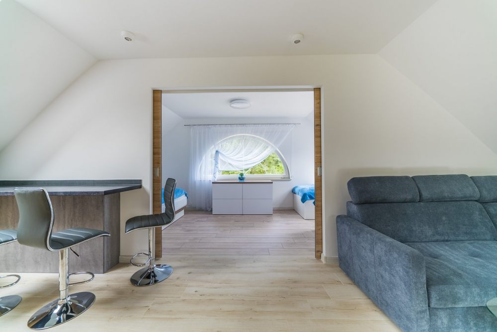 2 poziomowy, salon z aneksem, 2 sypialnie, łazienka, taras