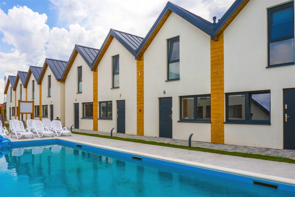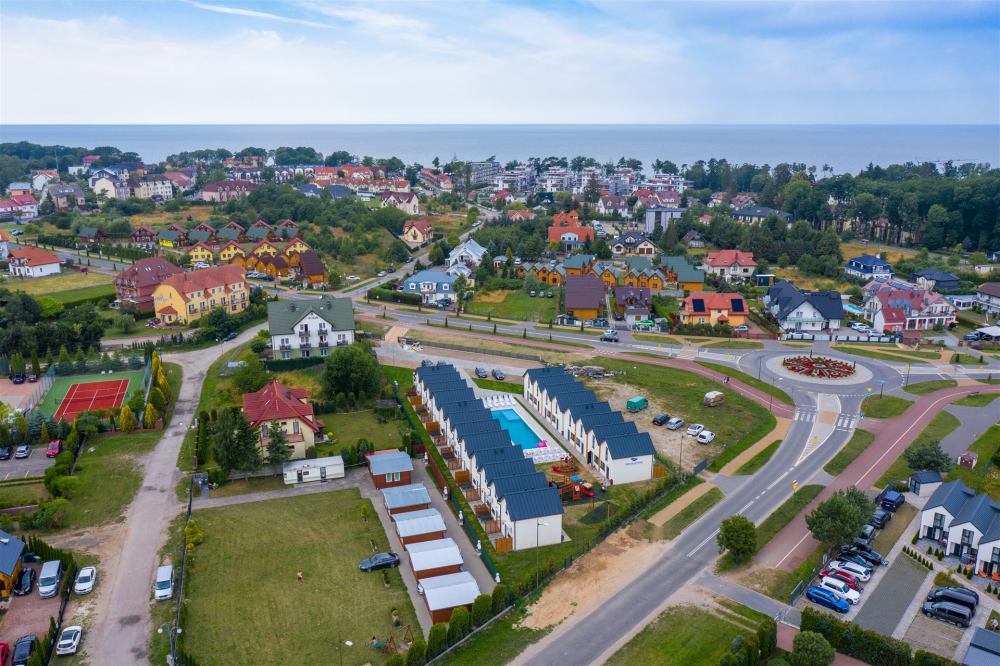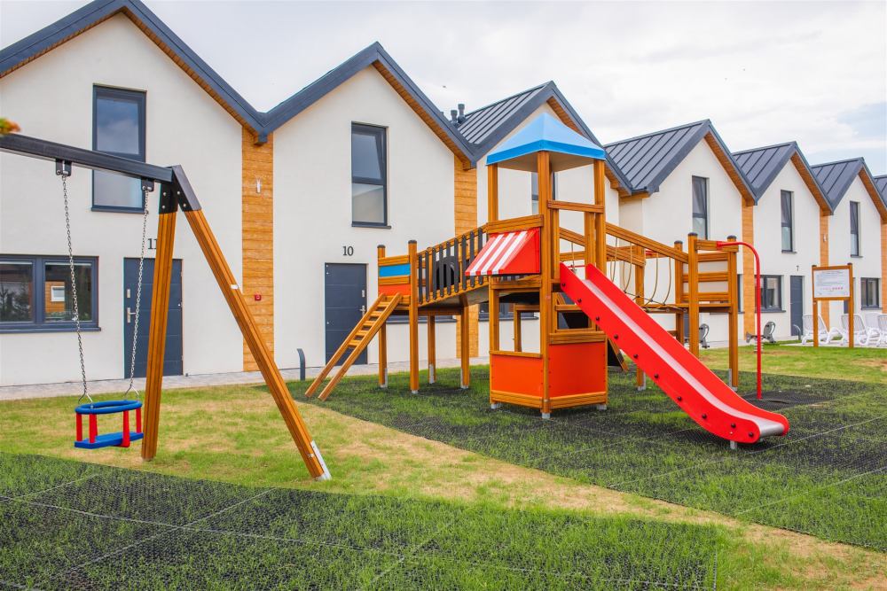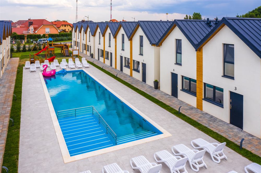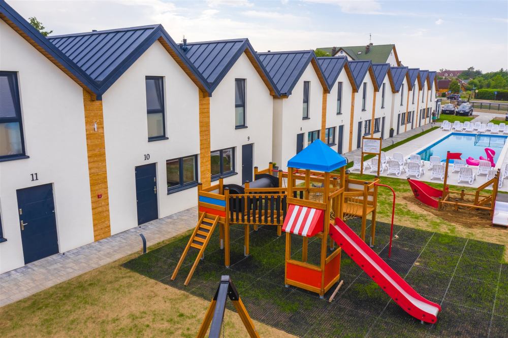 Na terenie naszego ośrodka Goście mogą korzystać z basenu z podgrzewaną wodą z wydzielonym brodzikiem dla dzieci, placu zabaw oraz strefy relaksu. Każdy domek posiada miejsce parkingowe na ogrodzonym i monitorowanym parkingu. Duże, przestronne, jasne i przytulne domki z tarasem gwarantują wygodny pobyt i komfortową przestrzeń dla rodzin z dziećmi.