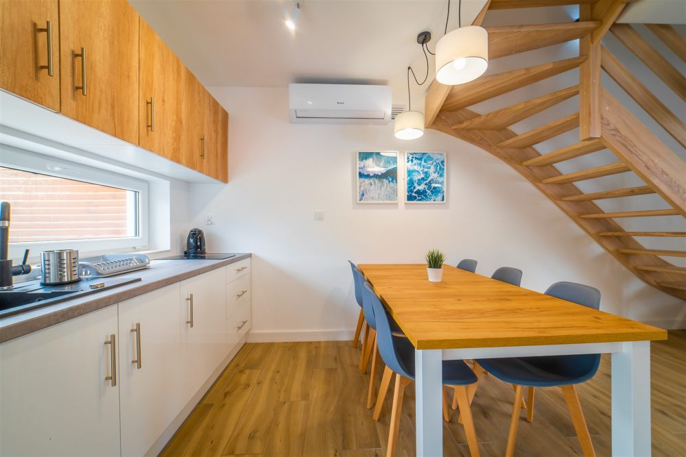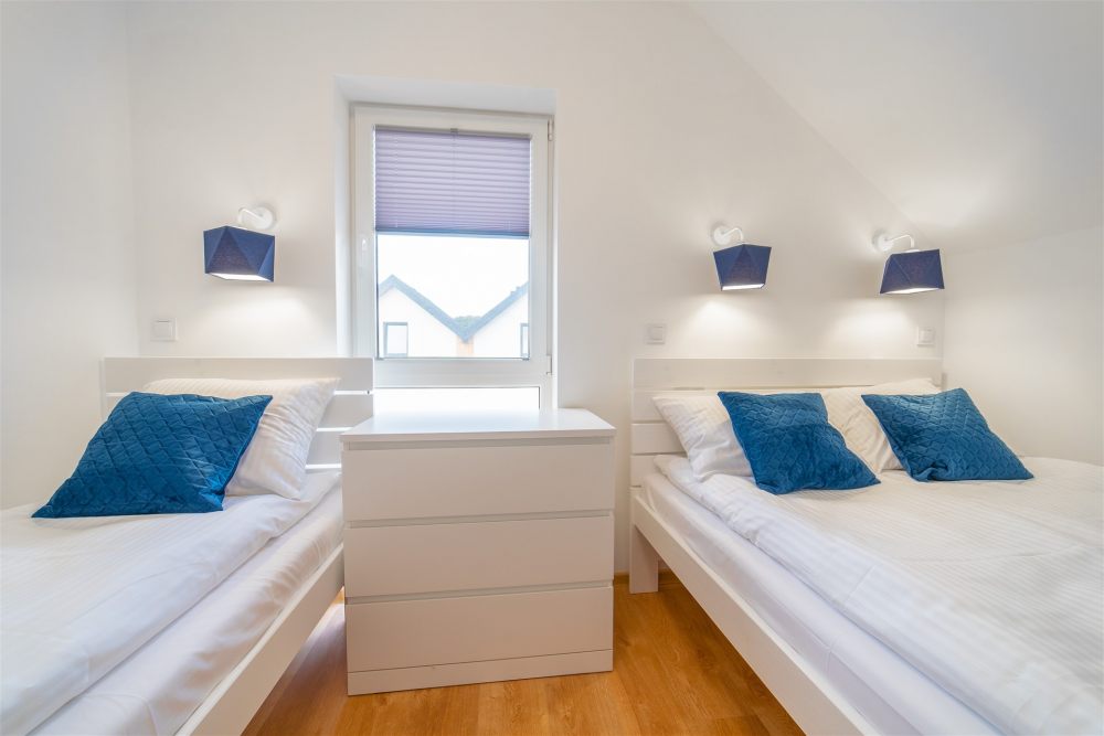 Naszym Gościom oferujemy zakwaterowanie w nowocześnie urządzonych domkach piętrowych o powierzchni 50m2 z prywatnym tarasem i ogródkiem o wielkości 20m2. Domki wyposażone są w klimatyzację.