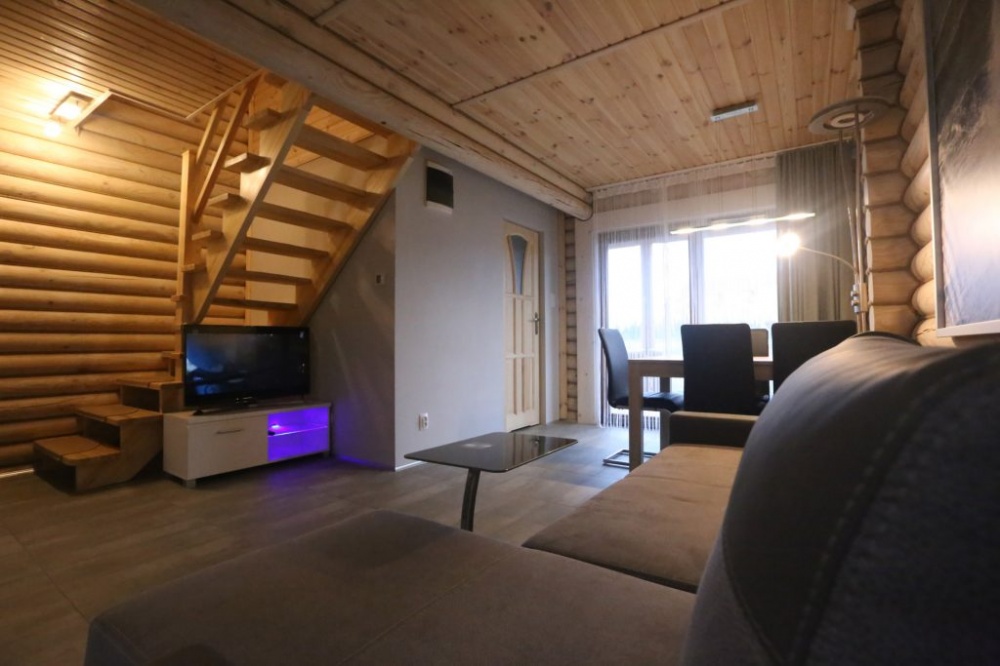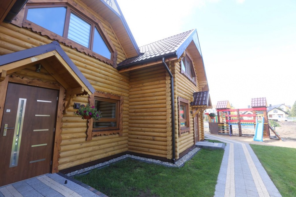 Naszym gościom oferujemy siedem dwukondygnacyjnych, komfortowych, w pełni wyposażonych domków z bali.