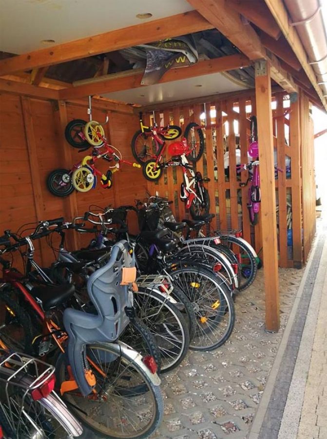 Każdy domek posiada wygodny taras wraz z zestawem ogrodowym (stolik i krzesełka) i zestaw plażowy.
