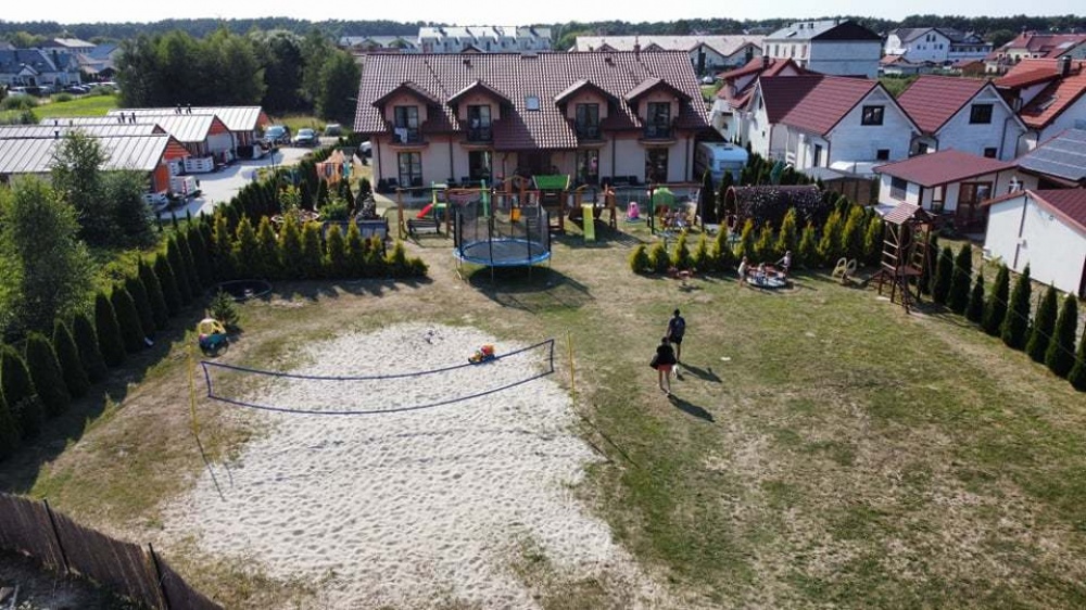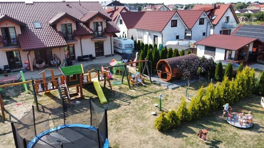 Pensjonat został oddany do użytku w czerwcu 2012r. Oferujemy komfortowe pokoje oraz apartamenty, każdy z aneksem kuchennym i łazienką. Do dyspozycji gości są komplety ogrodowe, komplety plażowe (parawan, leżak), rowery oraz monitorowany z każdego pokoju powiększony plac zabaw dla dzieci o kolejne zestawy do gry i zabawy. W recepcji posiadamy kącik malarski dla maluchów gdzie są organizowane konkursy z nagrodami. Eco Spa, sauna, jacuzzi i siłownia w cenie pokoju lub apartamentu.
