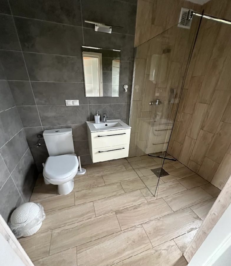 - ŁAZIENKĘ wraz z umywalką, kabiną prysznicową, oraz toaletę.
