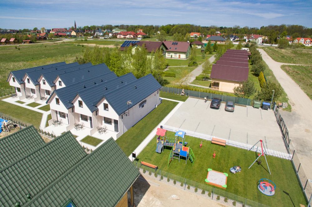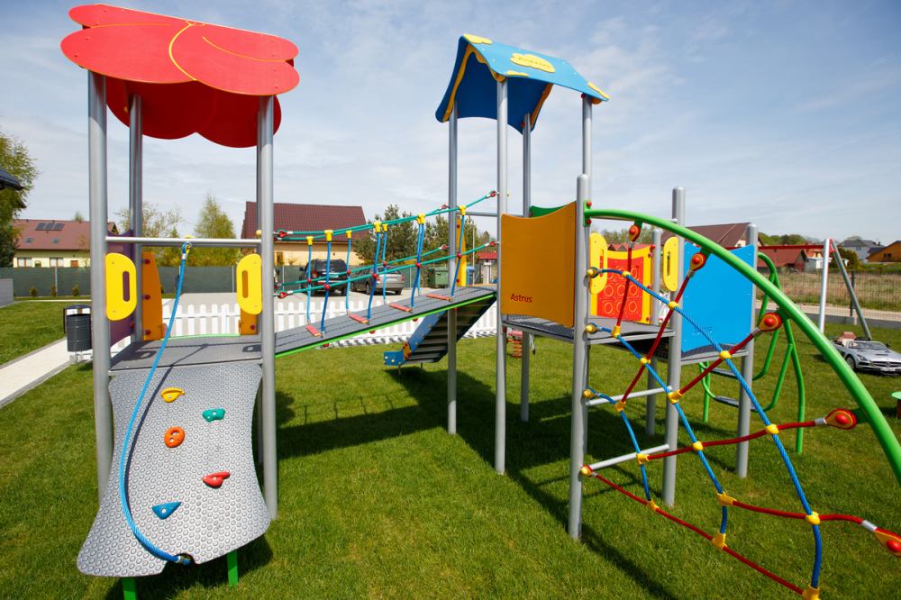 Dla dzieci stworzyliśmy kolorowy, posiadający wszelkie certyfikaty bezpieczeństwa plac zabaw. Na w pełni ogrodzonym terenie znajduje się duży, komfortowy parking z miejscem postojowym dla każdego domku.