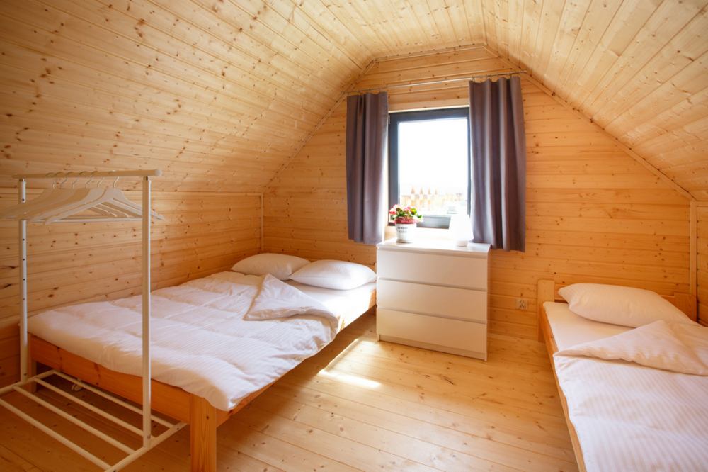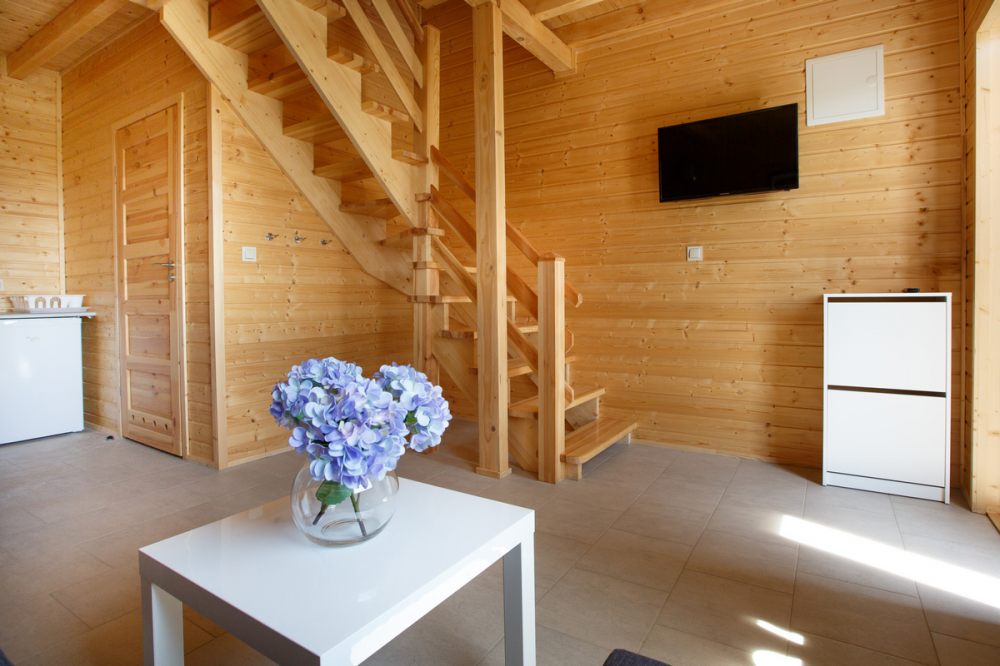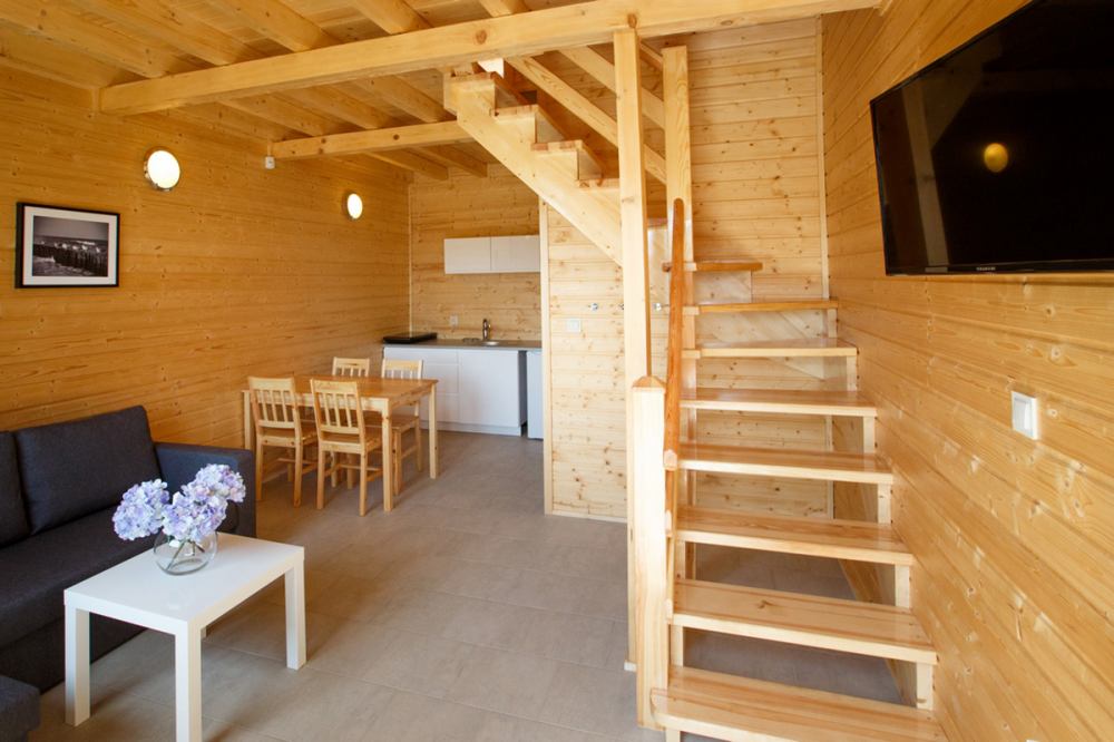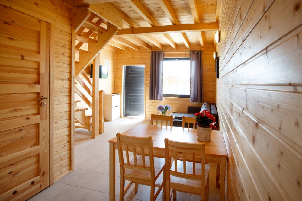 2-kondygnacyjne, w pełni wyposażone 6-osobowe domki o powierzchni 50m2 plus taras.