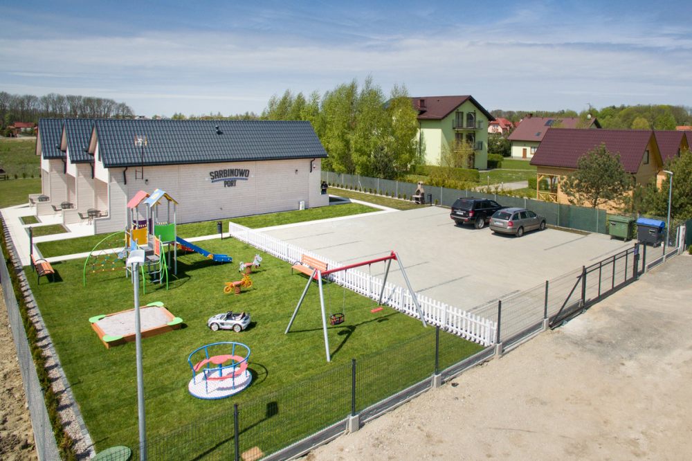 Sarbinowo Port to kompleks 14 nowoczesnych domków letniskowych o charakterze familijnym. Obiekt zlokalizowany jest 600m od morza w zacisznej części Sarbinowa przy ul. Wrzosowej 2. Połączenie naturalnego drewna z kolorami bieli i grafitu nadaje obiektowi typowo skandynawski styl.