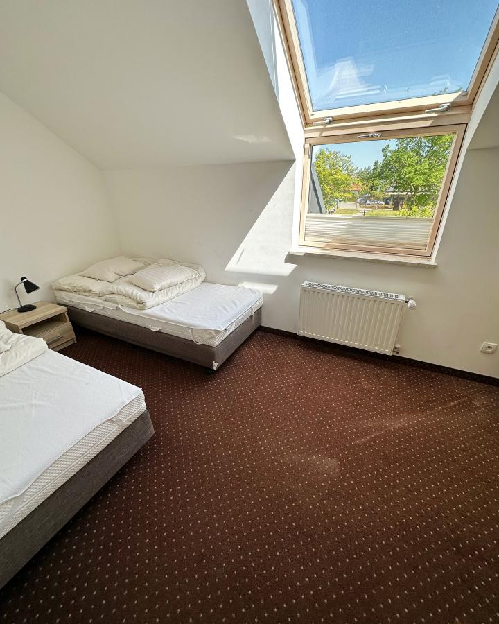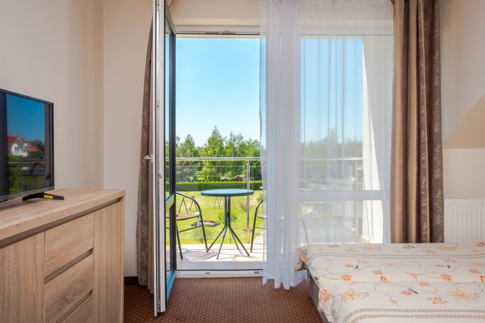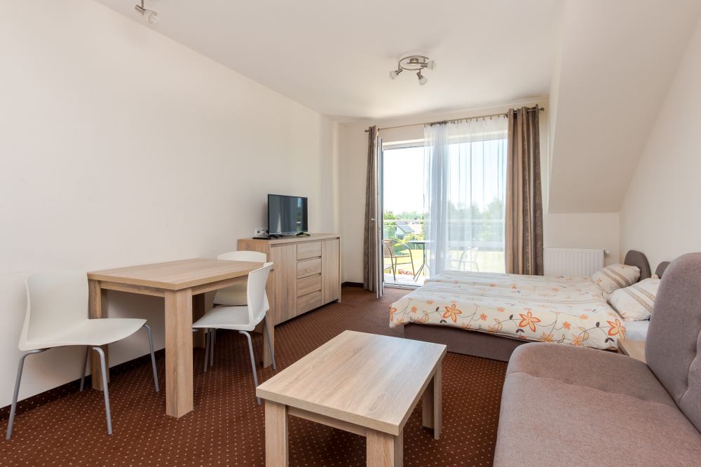 Pokoje hotelowe (2 do 4 osobowe) ich powierzchnia wynosi 28 m2. Wszystkie pokoje są ogrzewane, dzięki temu można wypoczywać w naszym Ośrodku również poza sezonem letnim. W skład pokoi wchodzą: przedpokój, salon z aneksem kuchennym oraz sofą z funkcją spania, część sypialna (łóżko podwójne lub dwa łóżka pojedyncze), łazienka oraz taras lub balkon.