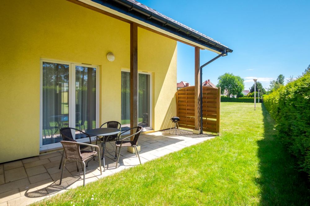 Pokoje w domkach parterowych niezależne pokoje 2, 3, 4 oraz 5 osobowe. Każdy pokój posiada własną łazienką oraz bezpośrednie wyjście na taras i ogród. Pobyty w domkach parterowych sprzedawane są w pakietach z pełnym wyżywieniem (3 pyszne domowe posiłki dziennie)