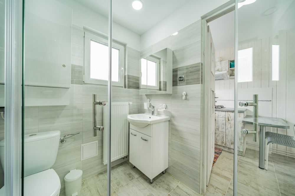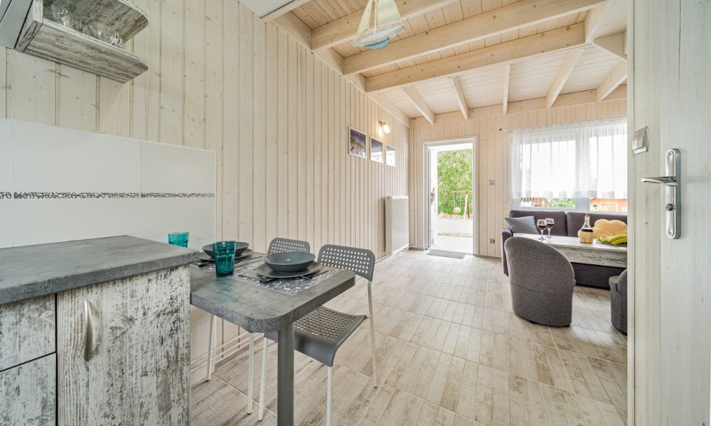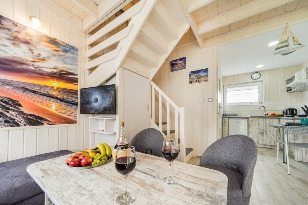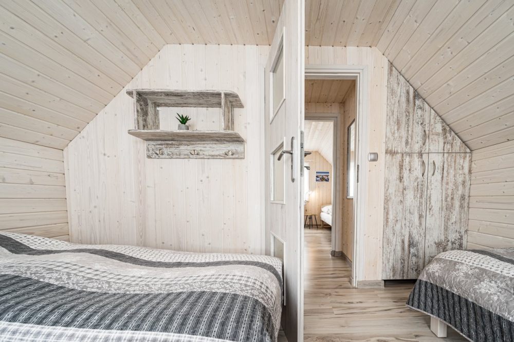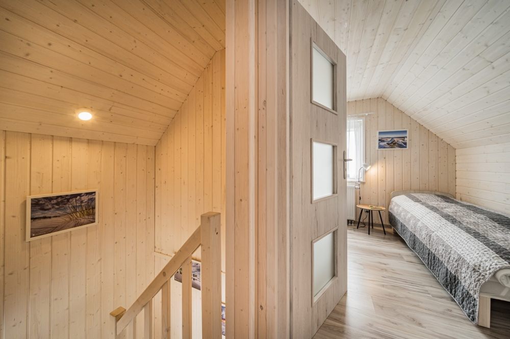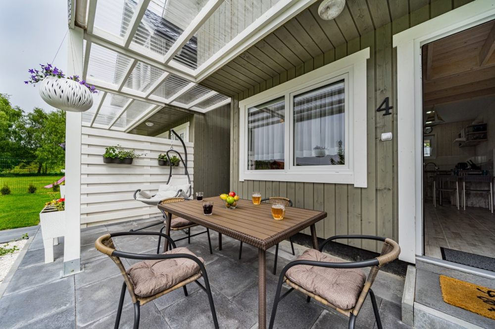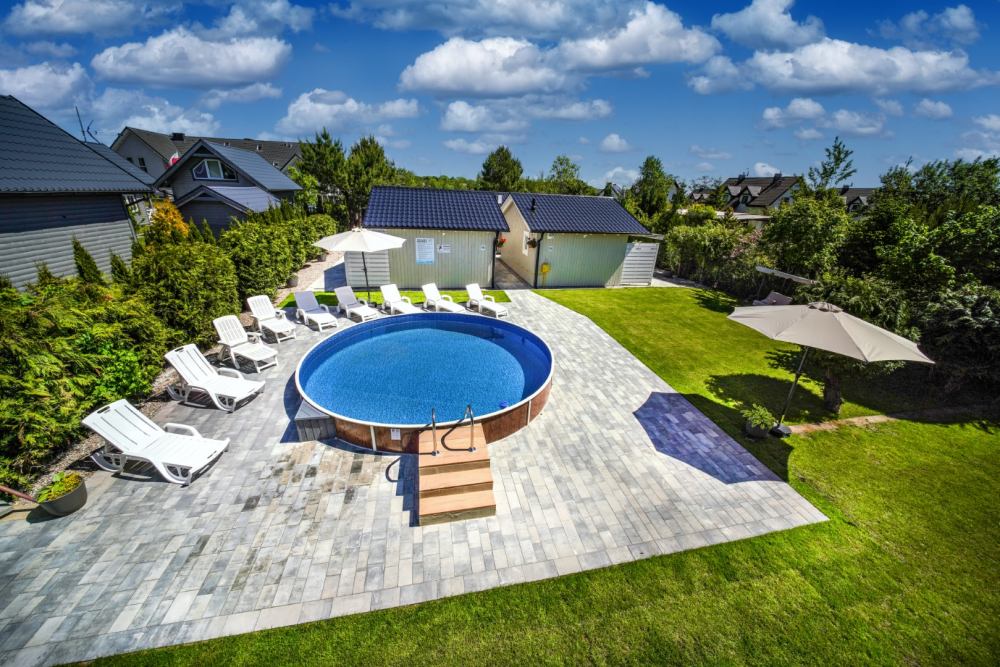 Domki są całoroczne w stylu skandynawskim o powierzchni 50 m2. Przy każdym domku jest zadaszony taras z meblami ogrodowymi oraz miejsce do grillowania. Mamy duży zadbany ogród i plac zabaw dla dzieci. Basen na terenie obiektu na wyłączność dla naszych gości - średnica 5,50 m i głębokość 1,2 m.