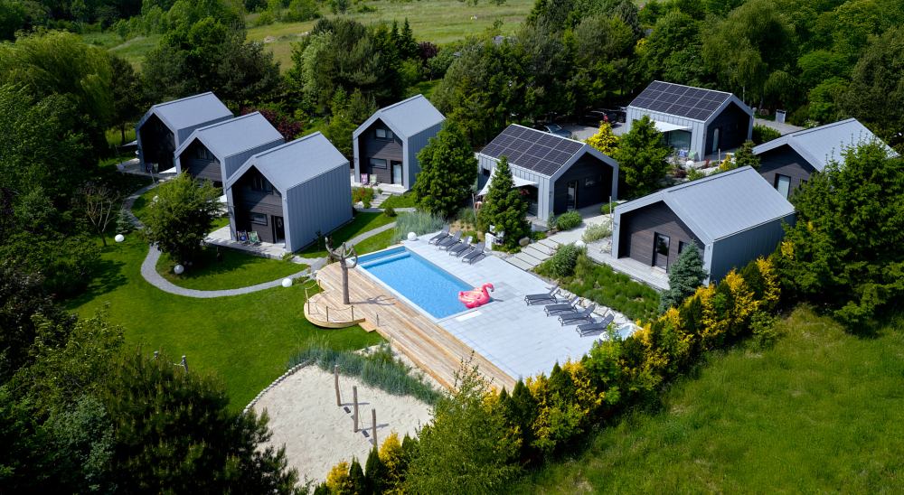 SKARPA to osada domów całorocznych, wykończonych w standardzie premium. Domy zostały ułożone na skarpie w taki sposób, by zapewnić intymność, przestrzeń oraz spokój podczas Państwa wypoczynku.