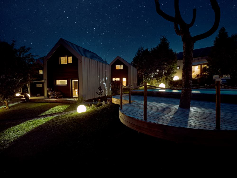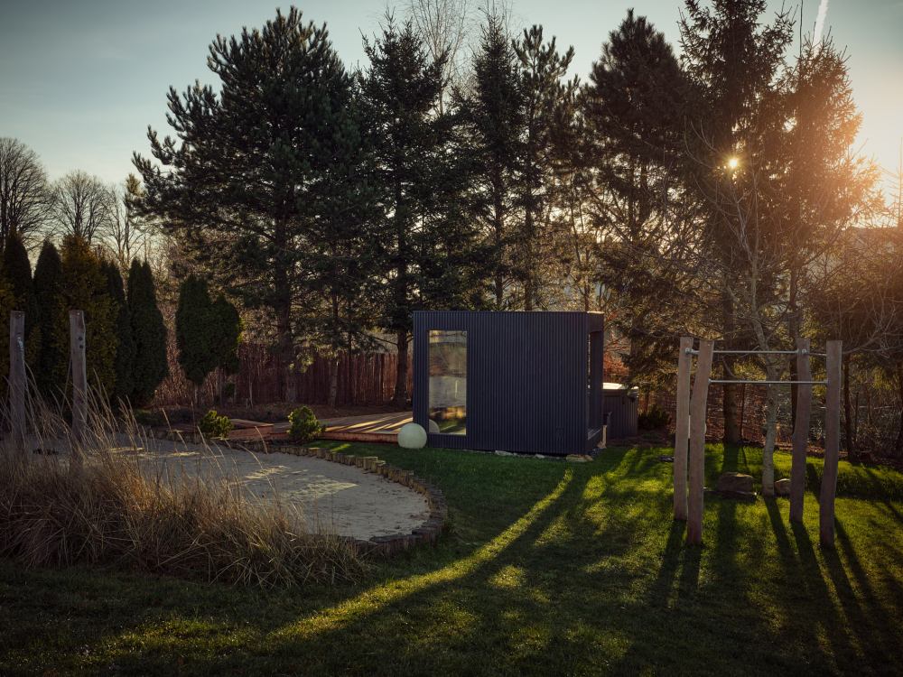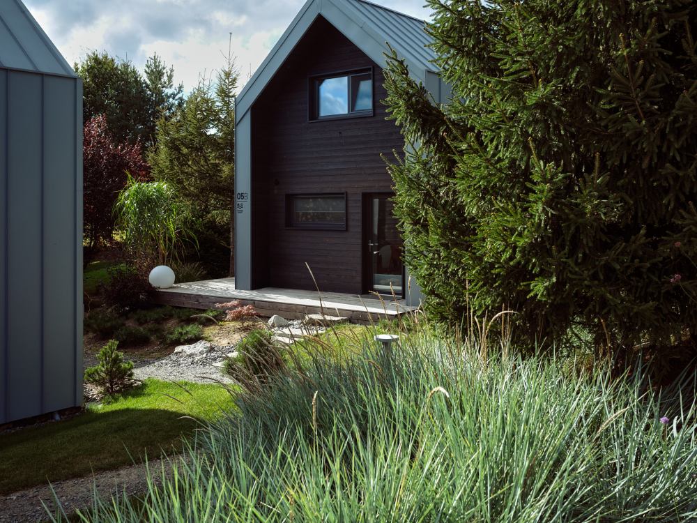 Każdy dom jest otoczony szerokim, drewnianym tarasem, dzięki któremu spędzą Państwo magiczny czas wśród kojącej zieleni.
