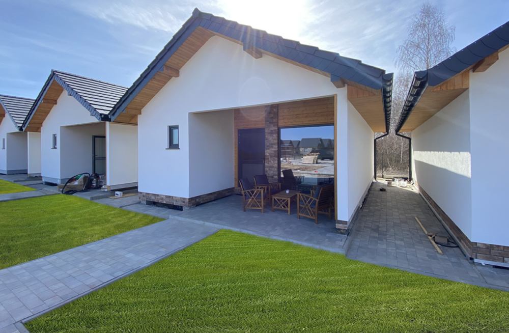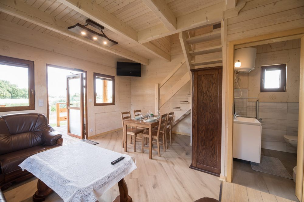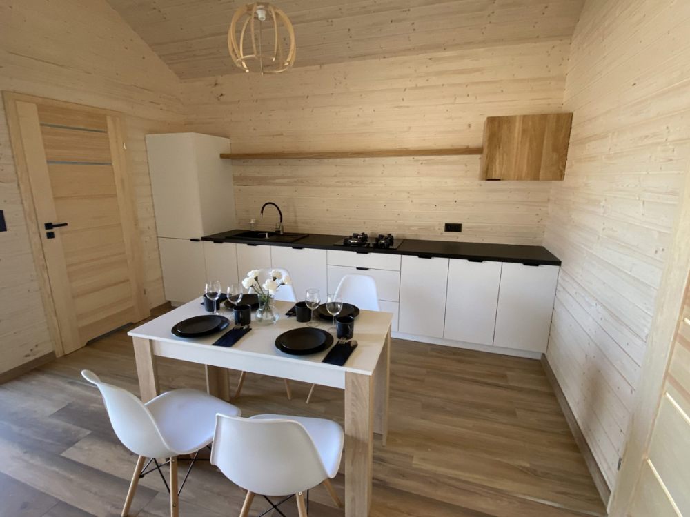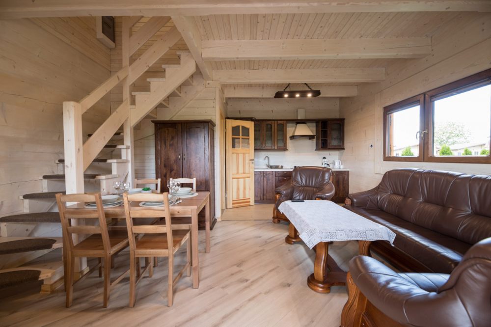 Każdy domek został wyposażony w aneks kuchenny w zabudowie dębowej w której znajduje się niezbędne wyposażenie kuchenne, wypoczynek skórzany z funkcją spania, ławę jadalnianą oraz dwie sypialnie wyposażone w jedno łoże sypialniane podwójne i dwa łóżka pojedyncze. Każdy z domków może jednorazowo pomieścić 4 do 6 osób. Przed każdym z domków znajduję się taras z ławą i wyposażeniem grillowym. Nasz ośrodek to najlepszy wybór dla rodzin z dziećmi oraz par które pragną spędzić urokliwe wakacje nad morzem w miłej atmosferze jaką gwarantuje wybór naszego ośrodka.