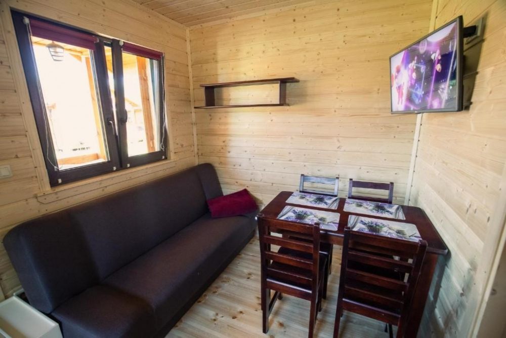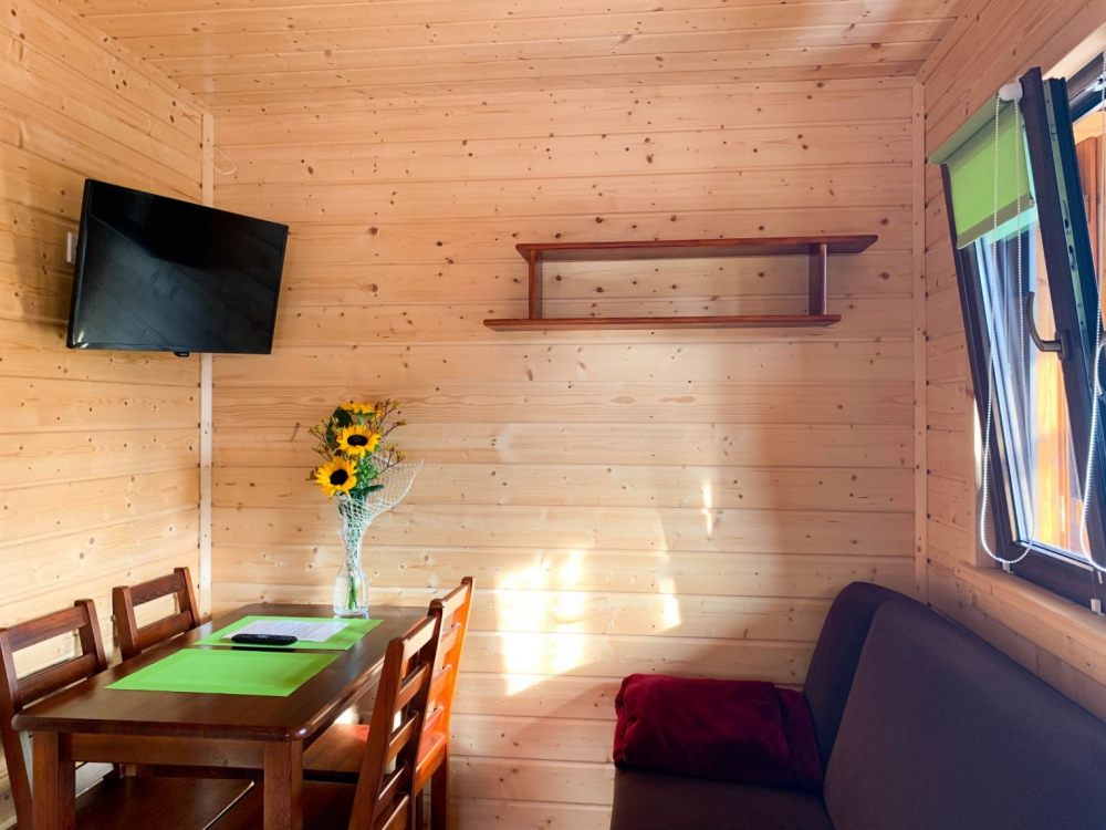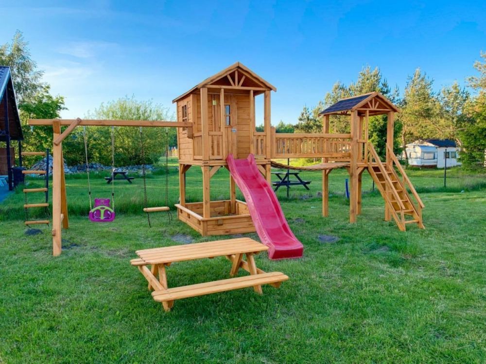 Oferujemy Państwu noclegi w drewnianych, komfortowo wyposażonych domkach letniskowych dla 4 do 5, 6 osób.