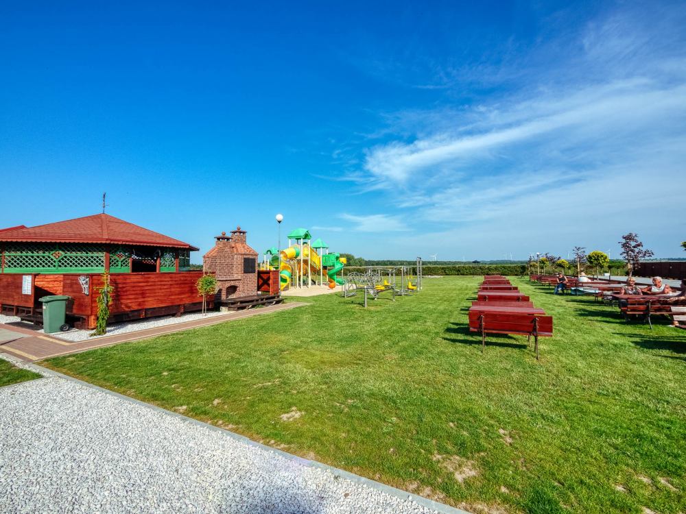 Na terenie naszego obiektu znajduje się plac zabaw dla dzieci: piaskownice, huśtawki, małpi gaj, zjeżdżalnie, trampolina, boiska do koszykówki i siatkówki oraz miejsce na ognisko i grilowanie. Posiadamy również sprzęt sportowo-rehabilitacyjne na wolnym powietrzu.
